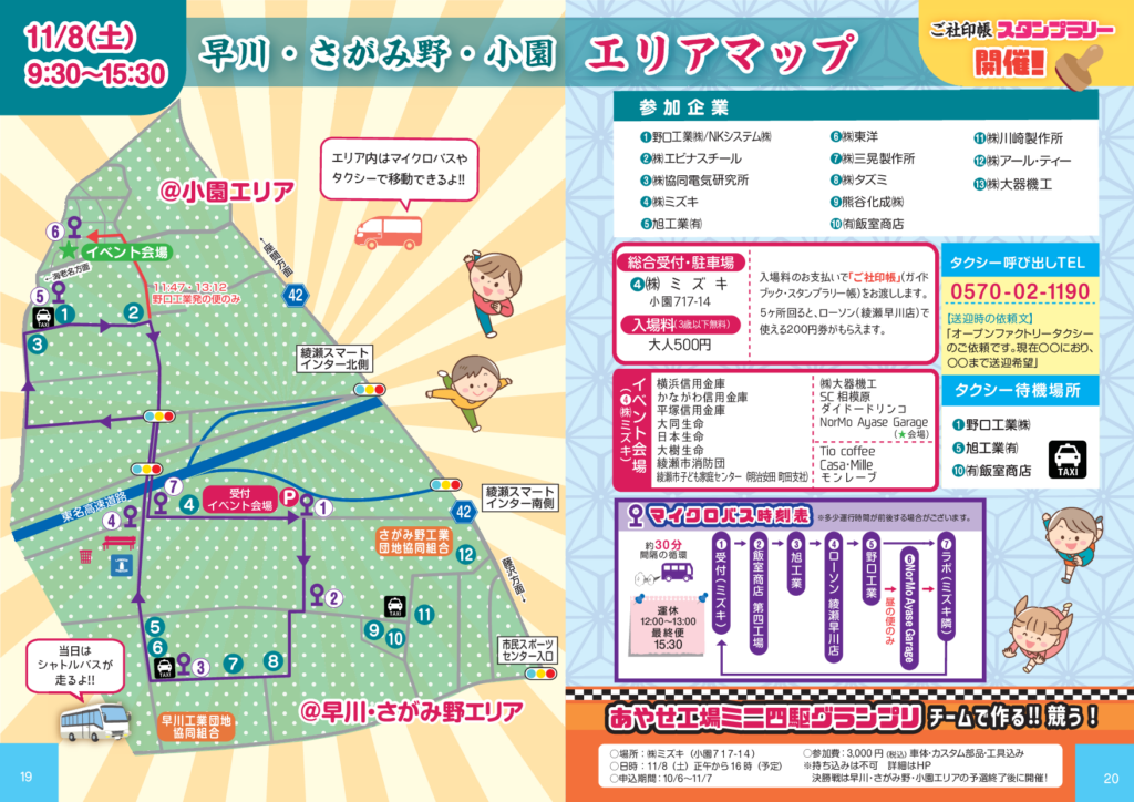 9:30 工場見学開始・マイクロバス・タクシー運行開始
